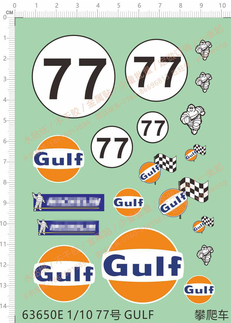 1 x 1/10 Scale Gulf 77 Water Slide Decal for Climbing Car Model Kit 63650E