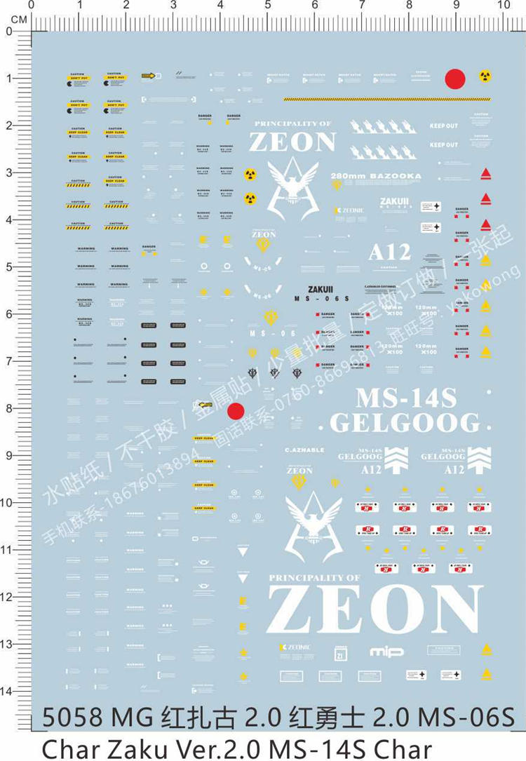 1 x 1/100 Scale MG MS-06S Char Zaku Ver.2.0 MS-14S Char Model Decal 5058