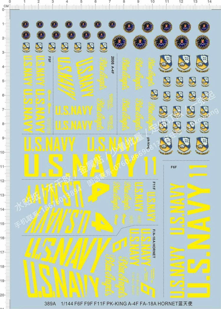 1 x 1/144 Scale Decals Blue Angels for F6F F9F A-4F F/A-18A HORNET Aircraft Model Kits 389A