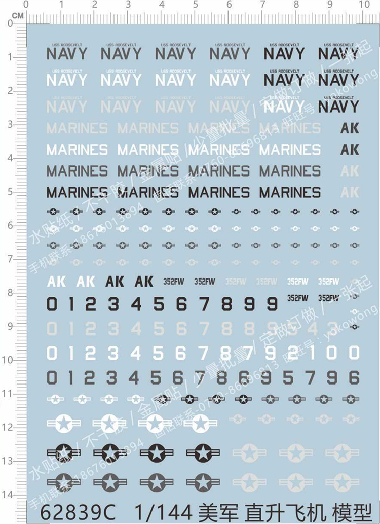 1 x 1/144 Scale Decals for USS Helicopter Model Kits 62839C