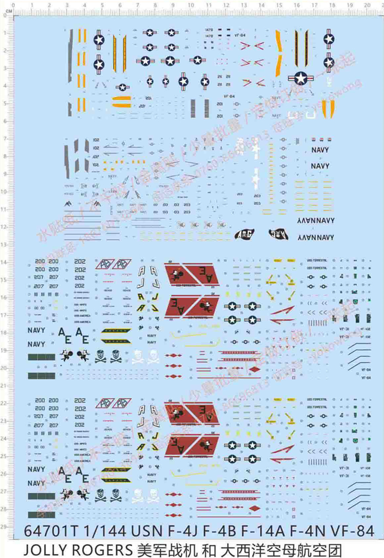 1 x 1/144 Scale USN F-4J F-4B F-14A F-4N VF-84 Jolly Rogers Fighter Model Water Slide Decal 64701T