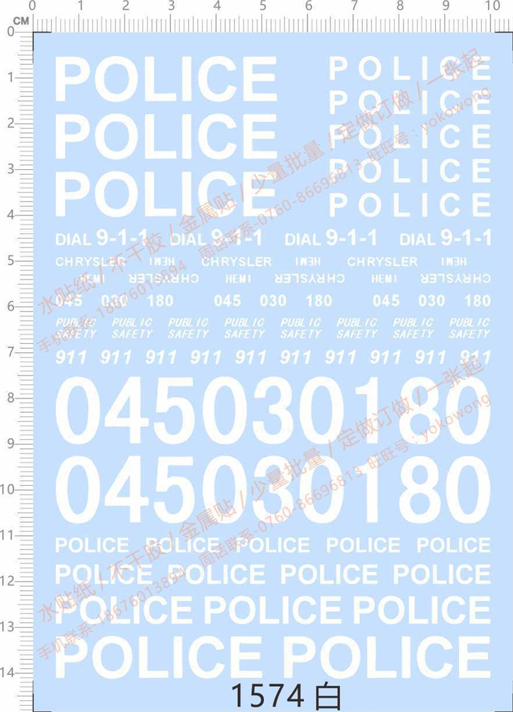 1 x 1/18 1/12 1/24 1/20 1/43 Scale Water Decals Police 911 (white) for Car Model 1574