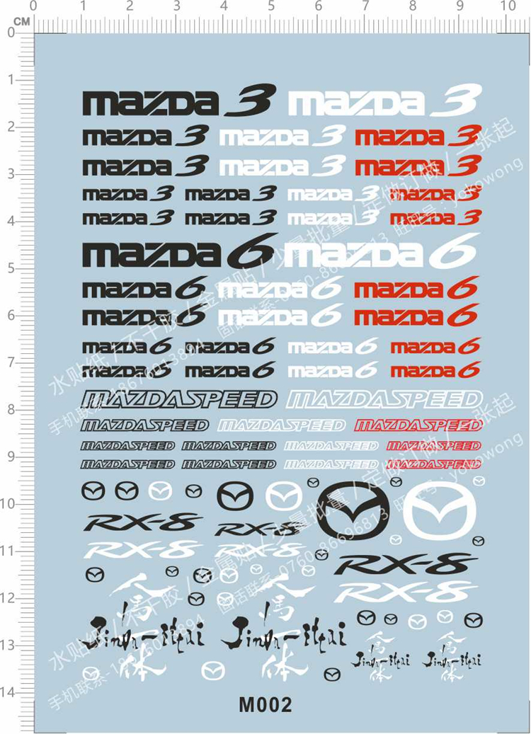 1 x 1/18 1/12 1/24 1/20 Scale MAZDA Decals for Car Model Kit M002