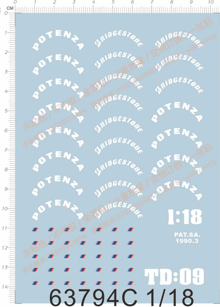 1 x 1/18 Scale Bridgestone Potenza Logo Tyre Water Slide Decal for Car Model Kit 63794C