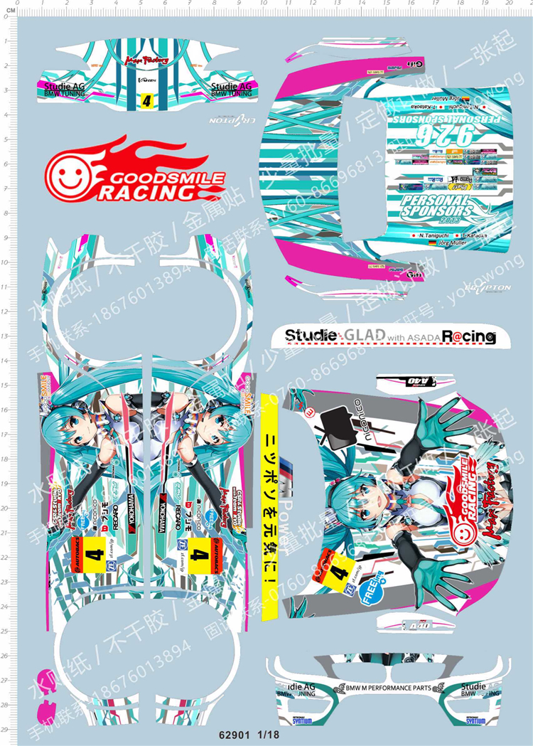 1 x 1/18 Scale Hatsune Miku Z4 BMW Water Slide Decal for Car Model Kit 62901