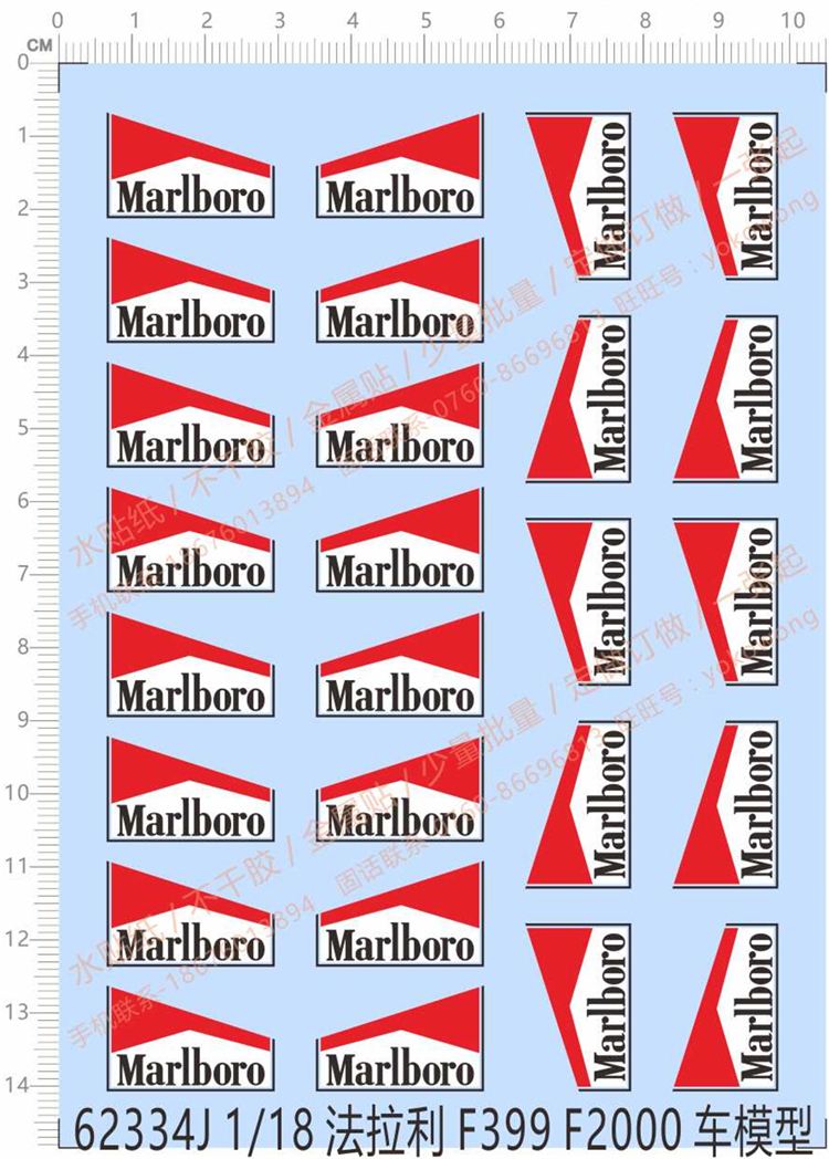 1 x 1/18 Scale Marlboro Water Slide Decal for Ferrari F399 F2000 Car Model Kits 62334J
