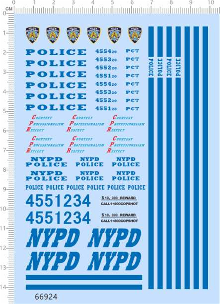 1 x 1/24 Scale Decals 911 Police NYPD for Model Car Kits 66924