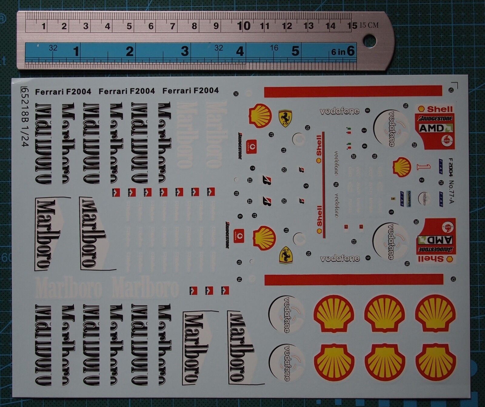 1 x 1/24 Scale Decals for F1 Ferrari F2004 Model Car Kits 65218B