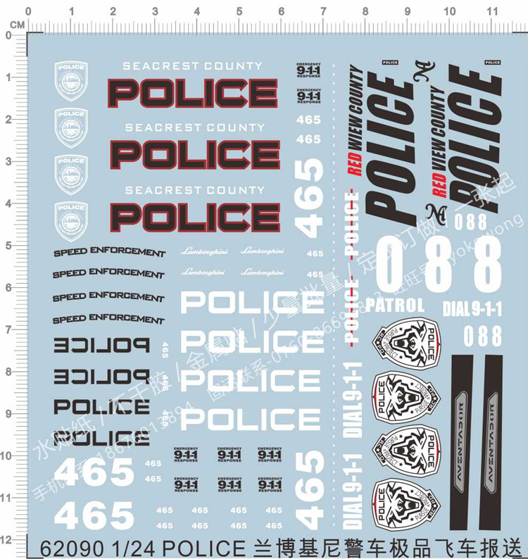 1 x 1/24 Scale Decals SEACREST COUNTY POLICE 911 for Car Model Kits 62090