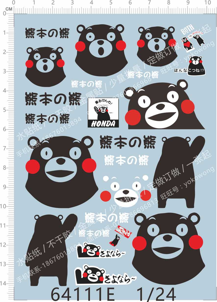 1 x 1/24 Scale Kumamon Water Slide Decal for Car Model Kit 64111E