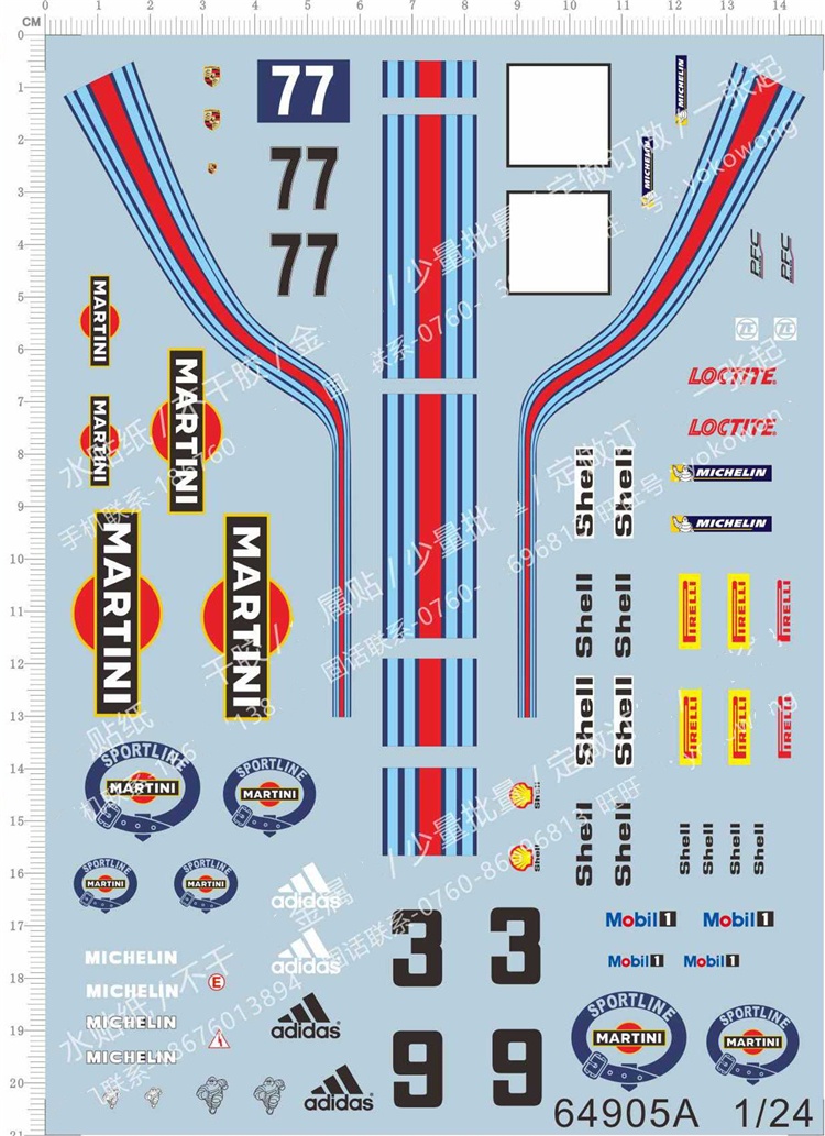 1 x 1/24 Scale Martini Porsche Racing Car Markings Logos Model Decal 64905A