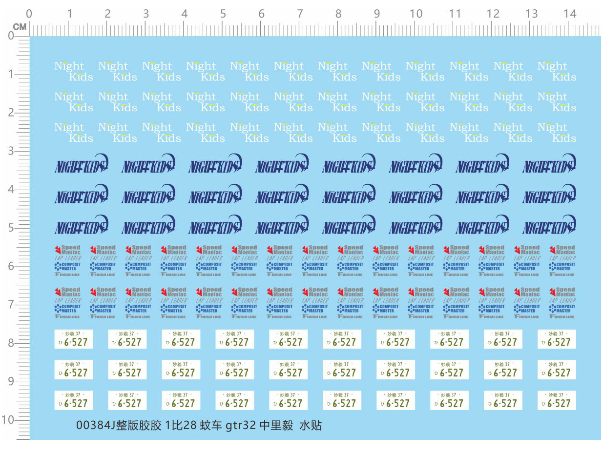 1 x 1/28 Scale Initial D GTR R-32 Night Kids Water Slide Decal for Car Model Kit 00384J