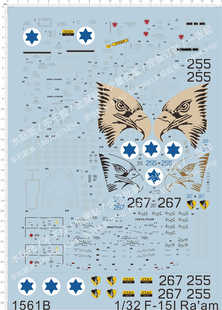 1 x 1/32 Scale Decals for F-15I Ra’am Military Aircraft Model Kits 1561B