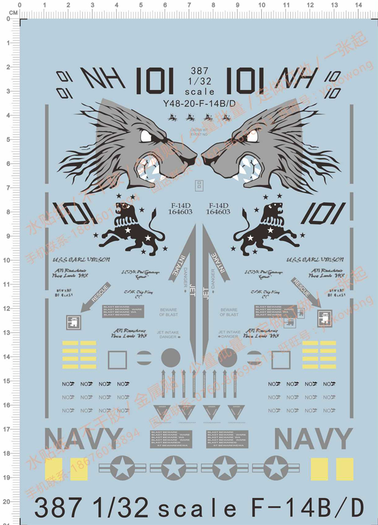 1 x 1/32 Scale Decals for F14 F-14 Military Fighter Model Kits 387