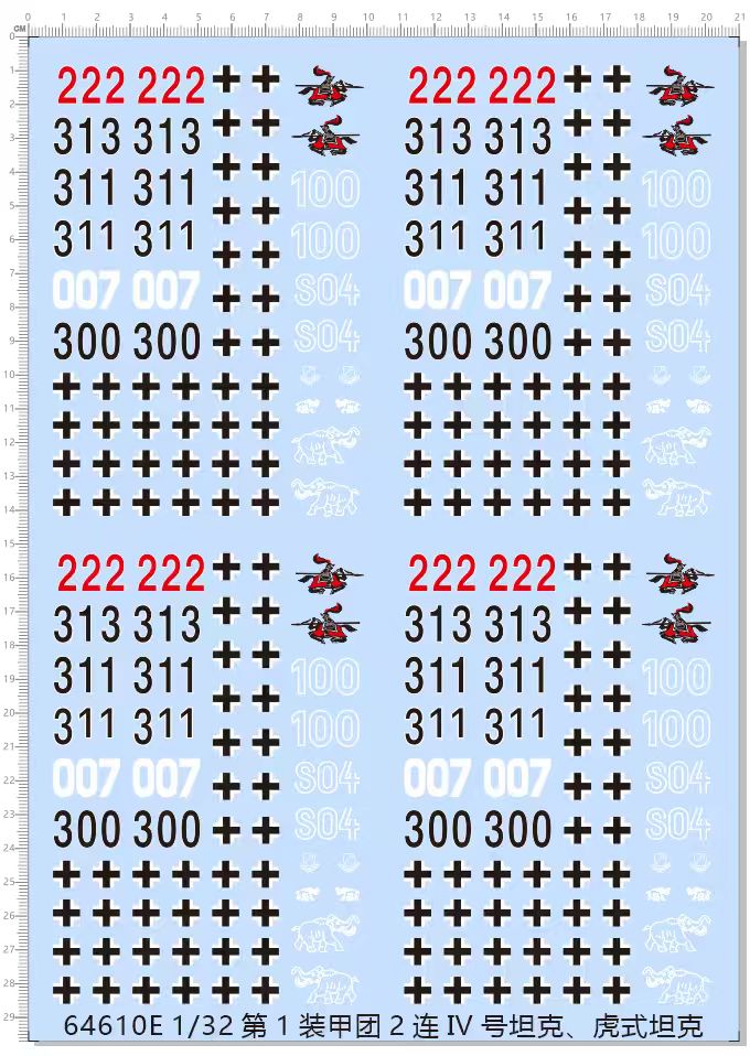 1 x 1/32 Scale German Tiger Tank Markings Water Slide Decal for Model Kit 64610E