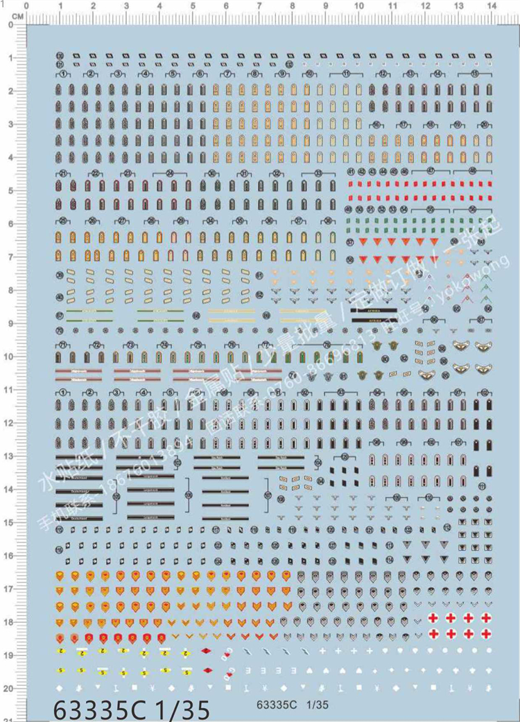 1 x 1/35 Scale Decals WWII German Uniform Insignia for Soldier Figures Model Kits 63335C