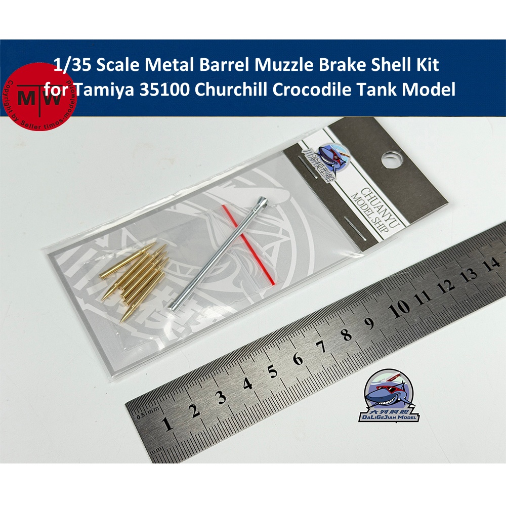 1 x 1/35 Scale Metal Barrel Muzzle Brake Shell Kit for Tamiya 35100 Churchill Crocodile Tank Model CYT369