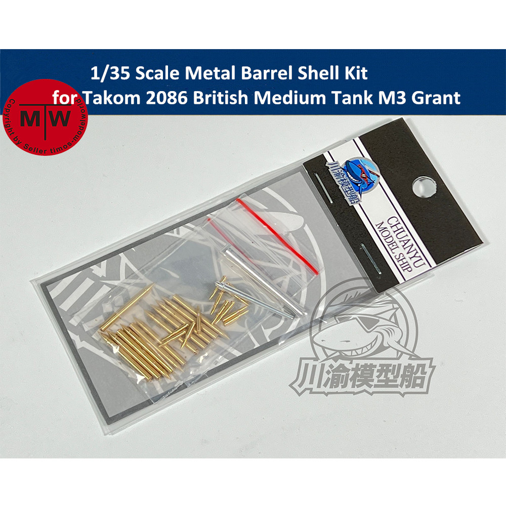 1 x 1/35 Scale Metal Barrel Shell Kit for Takom 2086 British Medium Tank M3 Grant Model CYT086(total 24pcs shell model)