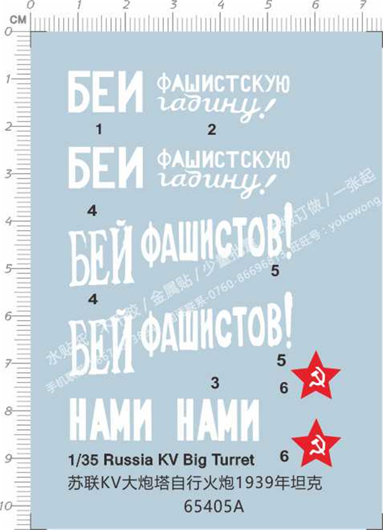 1 x 1/35 Scale Russia KV Big Turret Soviet Union 1939 Tank Model Kit Decal 65405