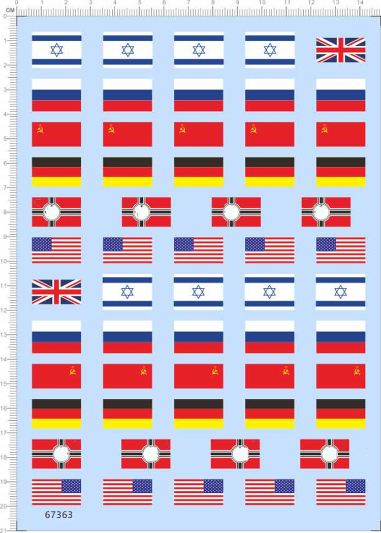 1 x 1/35 Scale US UK German Russian Flag Water Slide Decal for Model Tank Kit 67363