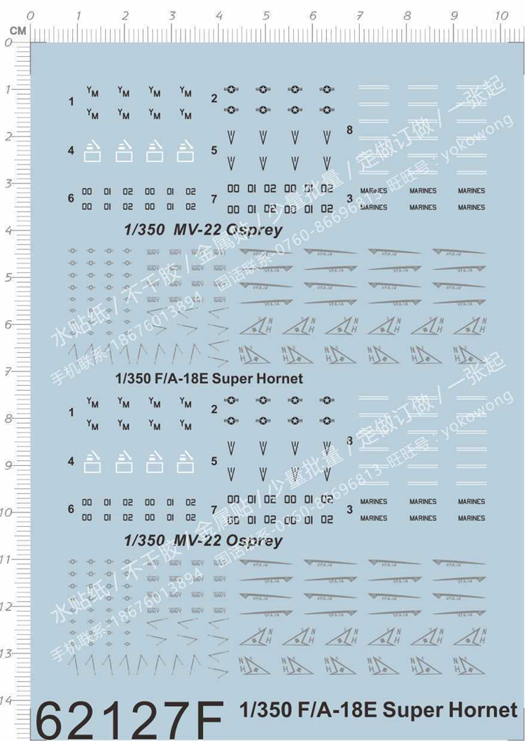 1 x 1/350 Scale F/A-18E Super Hornet MV-22 Osprey Fighter Aircraft Model Kit Decal 62127F