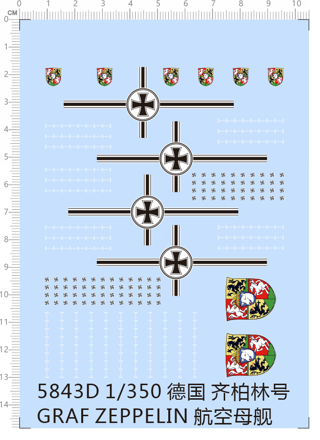 1 x 1/350 Scale German Graf Zeppelin Aircraft Carrier Model Badge Water Slide Decal 5843D