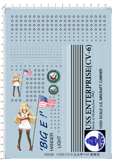 1 x 1/350 Scale USS Enterprise CV-6 Aircraft Carrier F4F Airplane Model Water Slide Decal 5843B