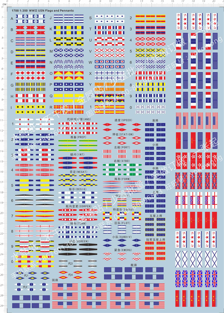 1 x 1/350 Scale WWII USN Flags and Pennants Decals 1788