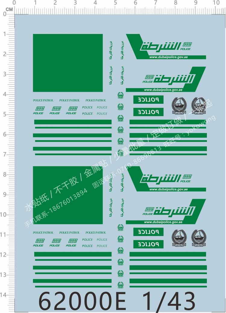 1 x 1/43 Scale Decals Dubai Police for Car Model Kits 62000E
