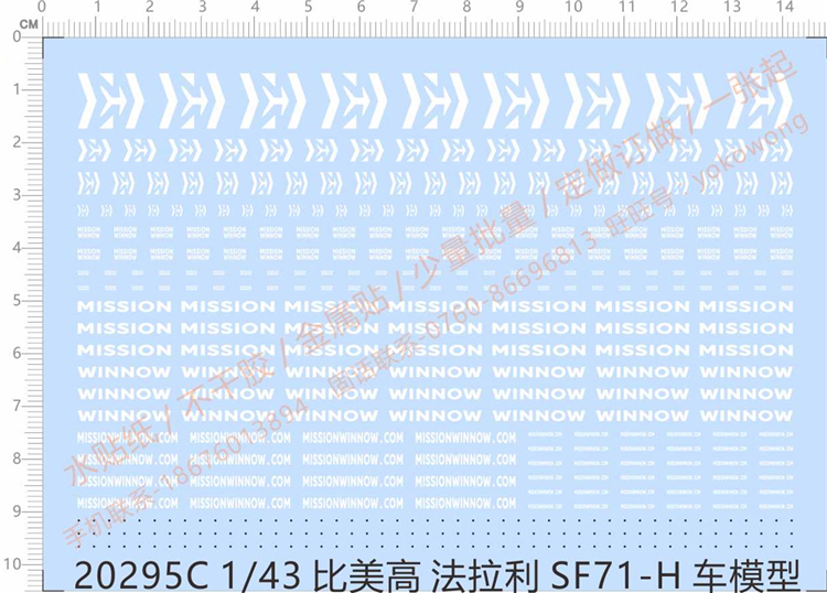 1 x 1/43 Scale Decals for Ferrari SF71-H Model Car Kits 20295C