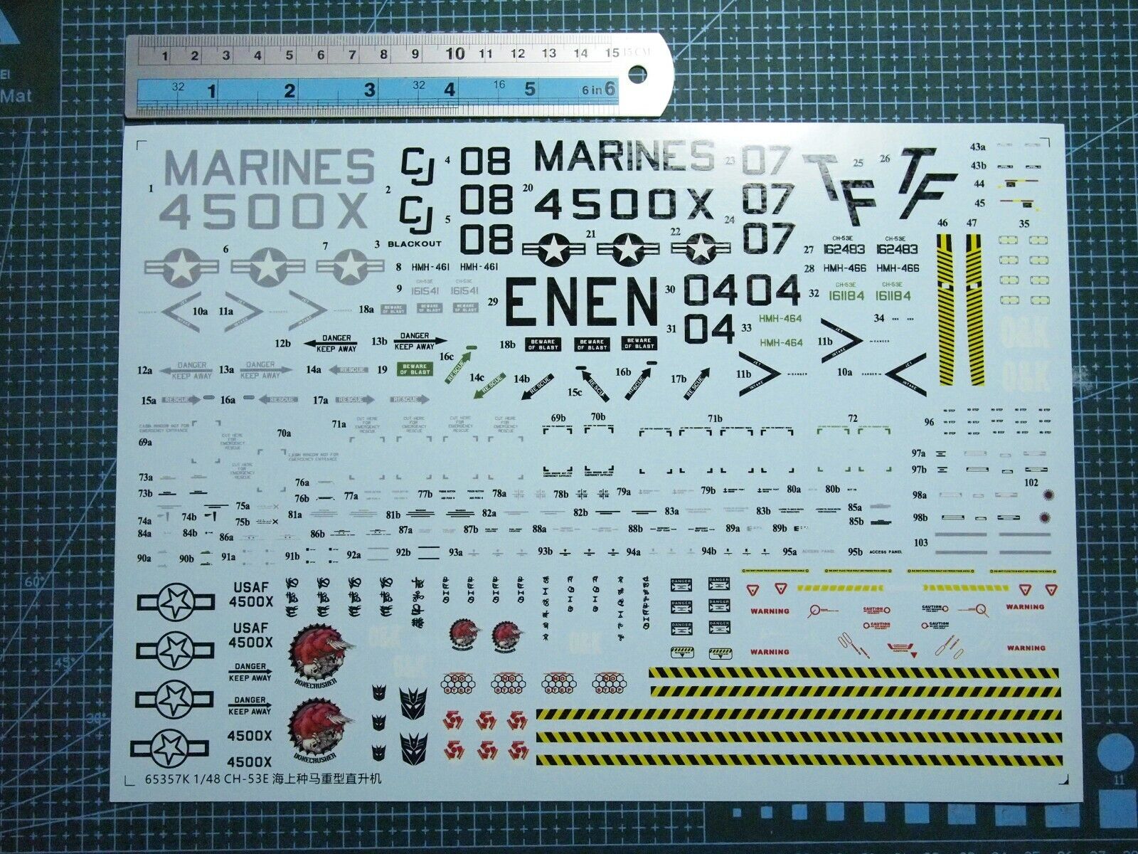 1 x 1/48 Scale Decals for CH-53E Super Stallion Helicopter Model Kits 65357K