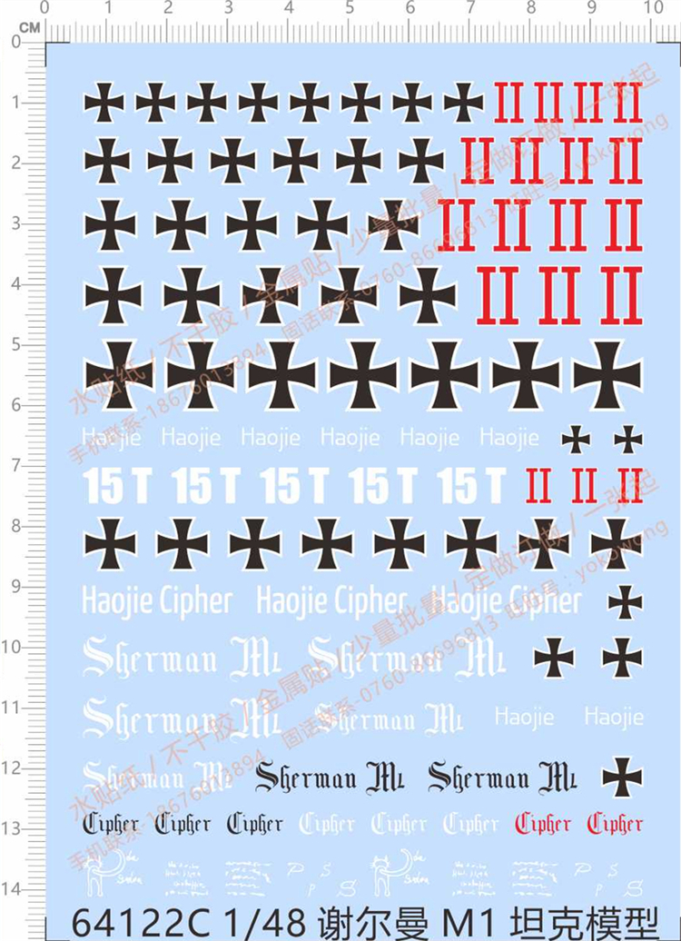 1 x 1/48 Scale Water Slide Decal for Sherman Tank Model Kits 64122C