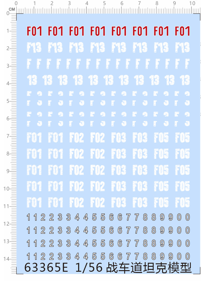 1 x 1/56 Scale F01 F03 F13 Number Water Slide Decal for Tank Model Kits 63365E