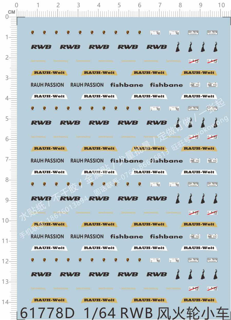 1 x 1/64 Scale RAUH-Welt RWB fishbane logos Decal for Model Kit 61778D