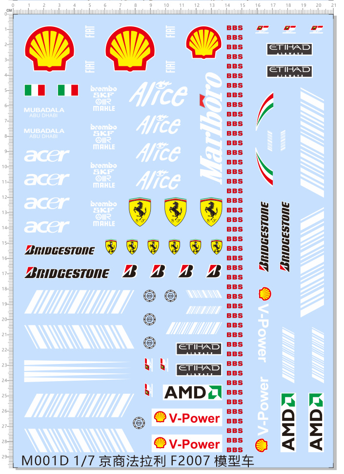 1 x 1/7 Scale Kyosho Ferrari F2007 Model Sponsor Logo Decal M001D
