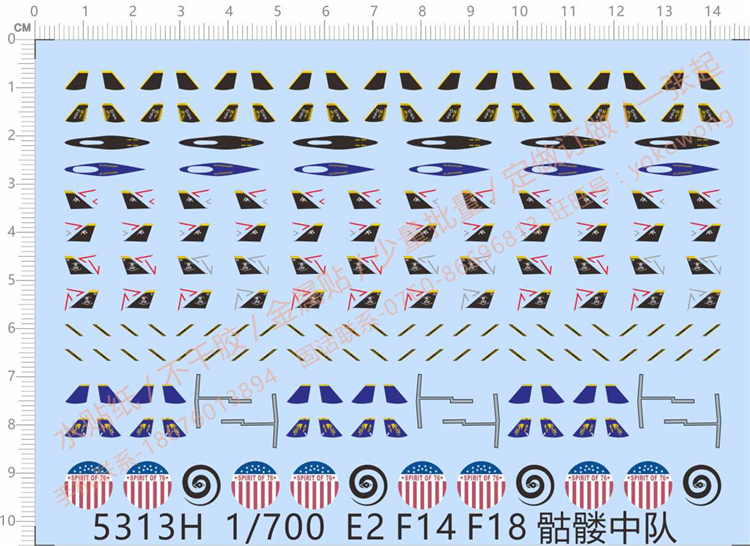 1 x 1/700 Scale Decals for E2 F14 F18 Modern Carrier-based Aircraft Model Kits 5313H