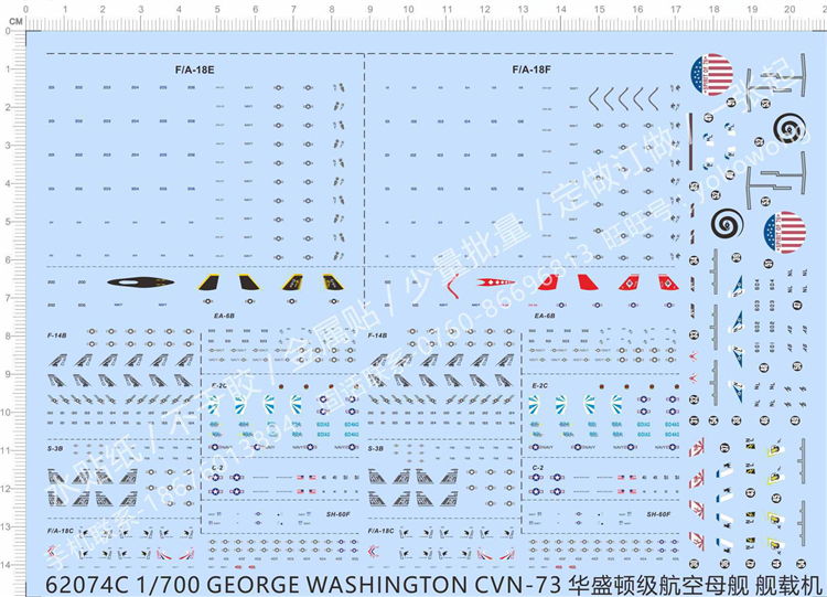 1 x 1/700 Scale Decals Modern Carrier-based Aircraft George Washington CVN-73 Model Kits 62074C