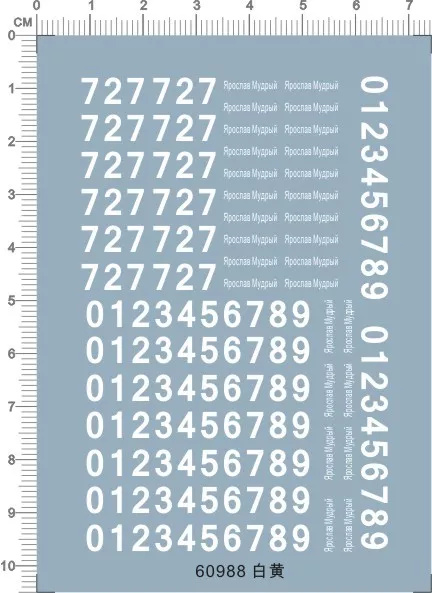 1 x 1/700 Scale Russia Navy Numbers Characters Decal for Model Ship Kit 60988 White