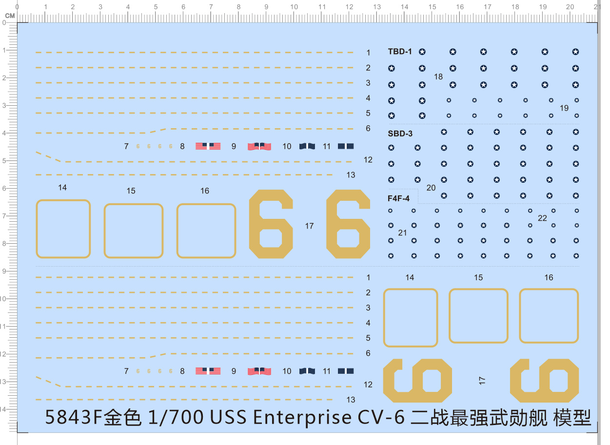 1 x 1/700 Scale USS Enterprise CV-6 Model Kit Water Slide Decal 5843F