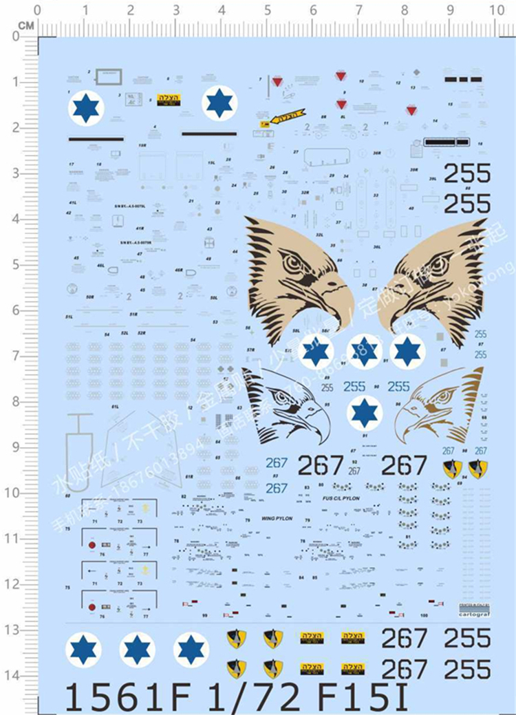1 x 1/72 Scale Decals for F-15I Ra’am Military Model Kits 1561F