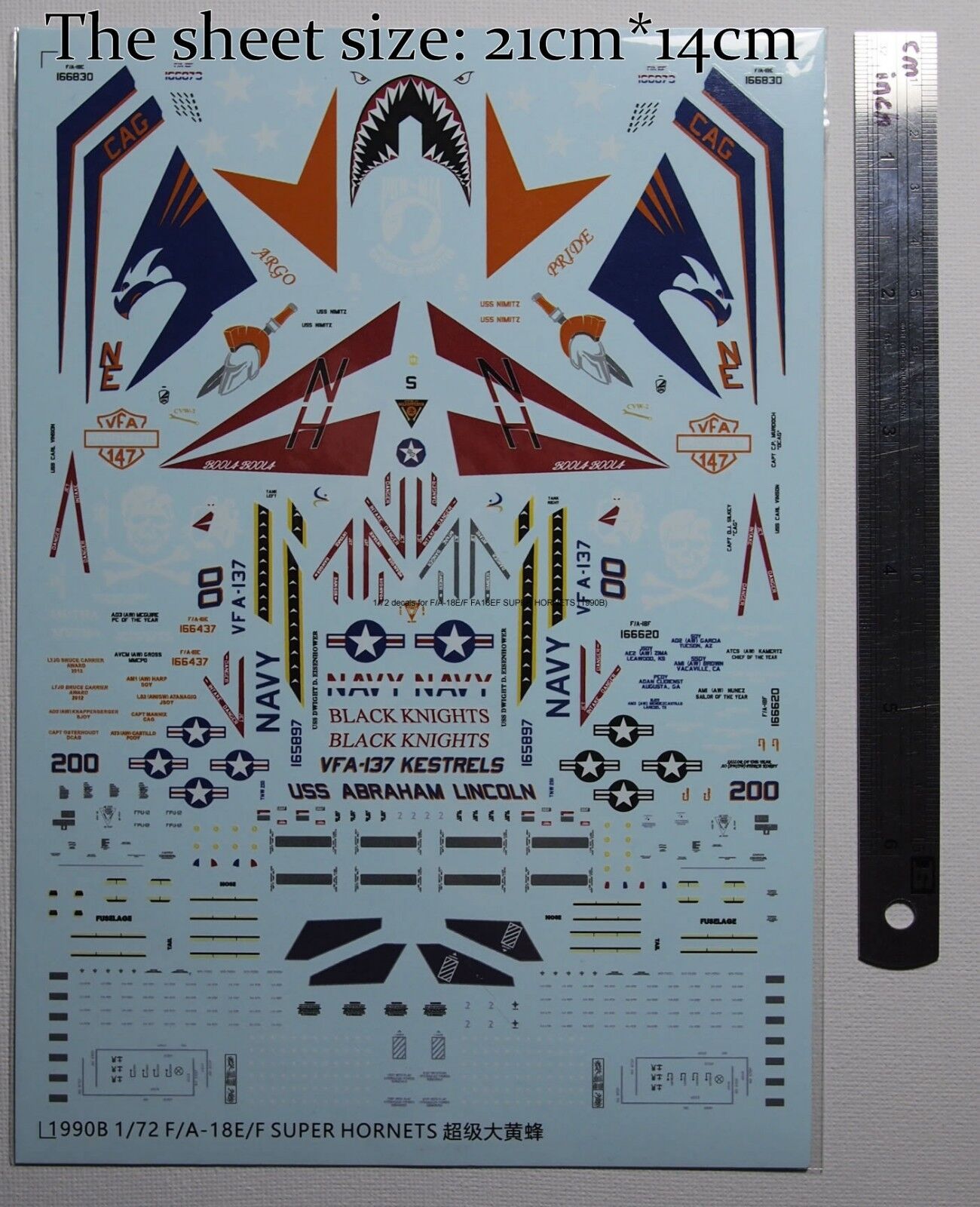 1 x 1/72 Scale Decals for F/A-18E/F Super Hornets Fighter Aircraft Model Kits 1990B