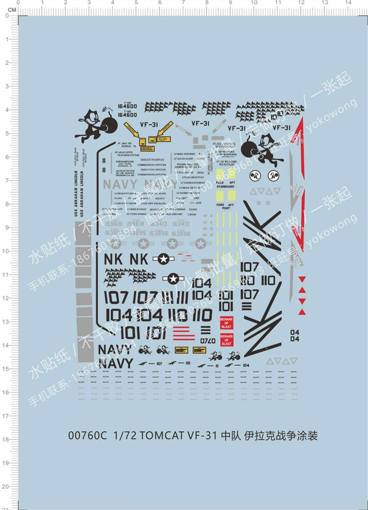 1 x 1/72 Scale Decals for Tomcat VF-31 Aircraft Model Kits 00760C
