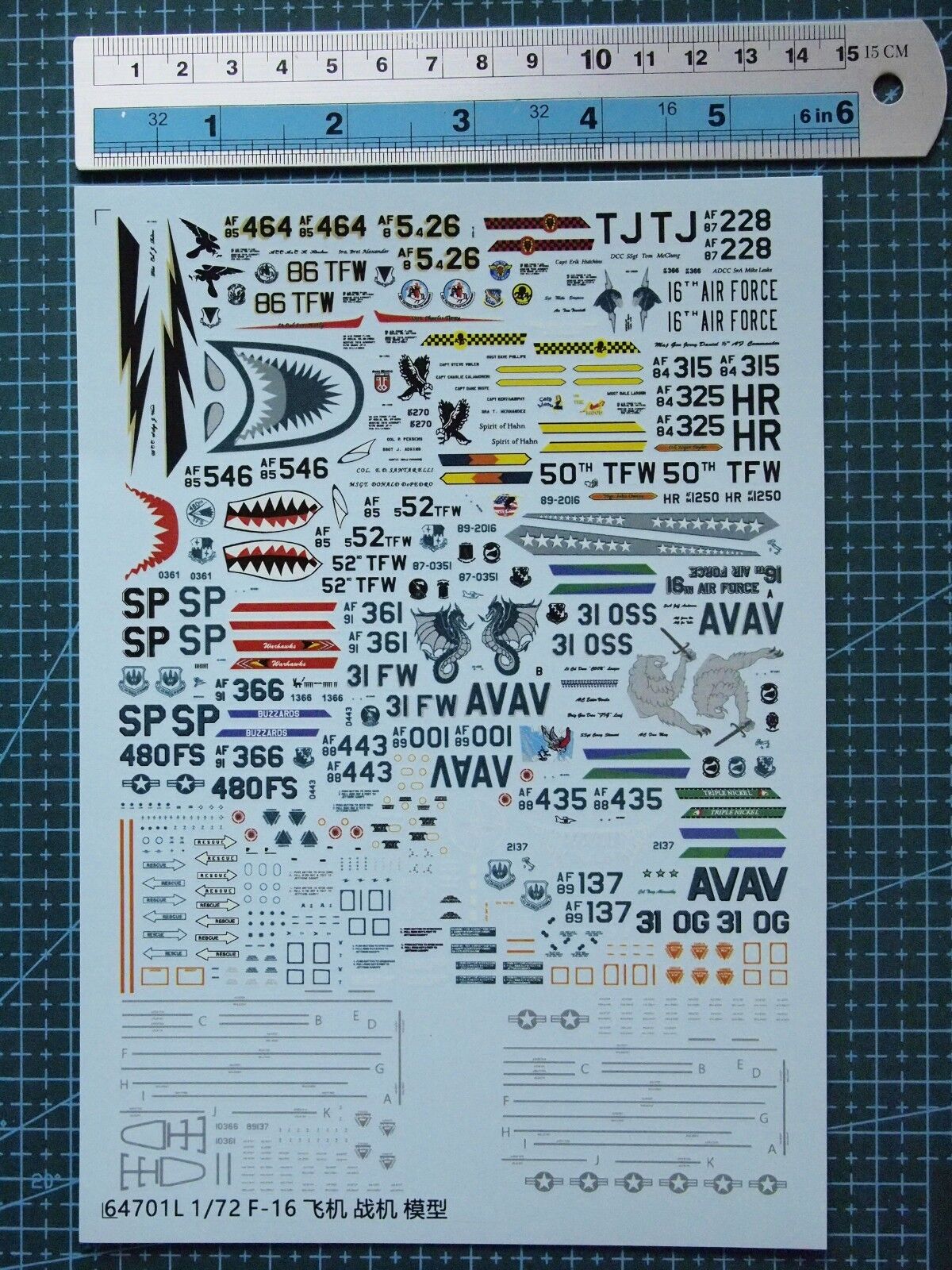 1 x 1/72 Scale Decals for yf-16 F-16 Aircraft Model Kits 64701L