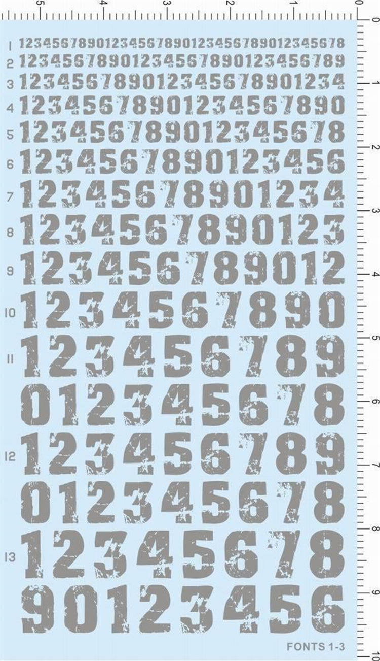 1 x Aging Paint Peeling Number Fonts 1-3 Water Slide Decal for Different Scale Model Kits Gray
