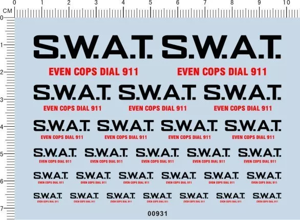 1 x All Scale 1/24 1/18 1/43 1/20 1/12 1/6 Scale S.W.A.T. Model Kit Decal 00931Black Red