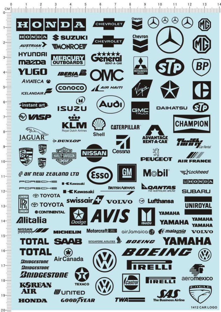 1 x Car Logo Water Slide Decal for Model Kit 1412 Black/White/Gray/Red
