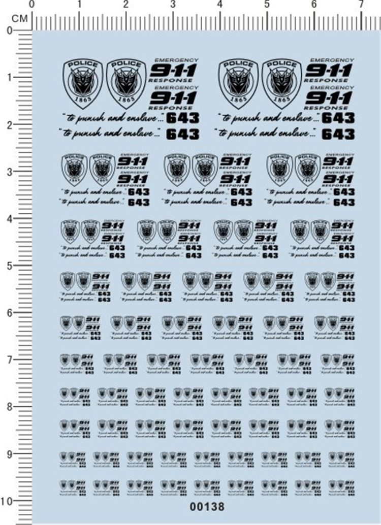 1 x Decals Transformers POLICE 911 643 for Different Scales 00138 Black or Red