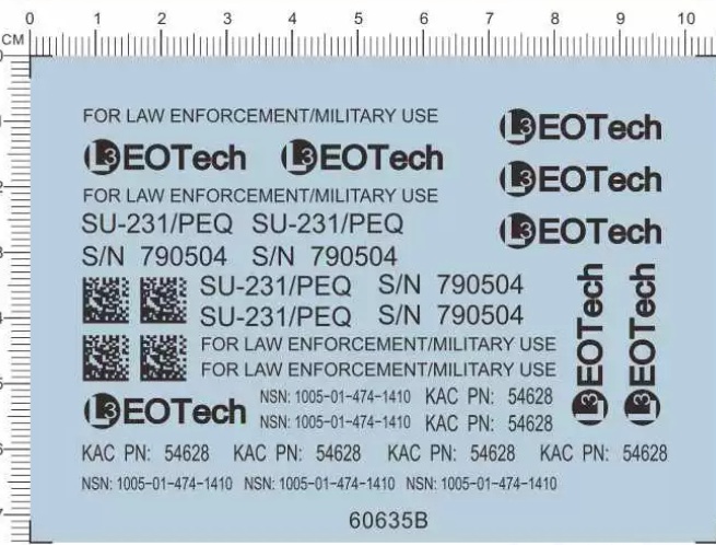 1 x Enforcement Mlilitary SU-231/PEQ eotech Water Slide Decal for Model Kit 60635/60635B