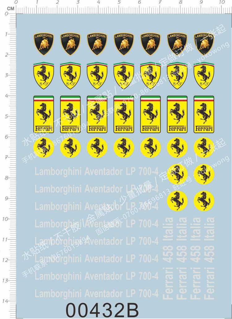 Ferrari Water Slide Decal for Car Model Kit De00432