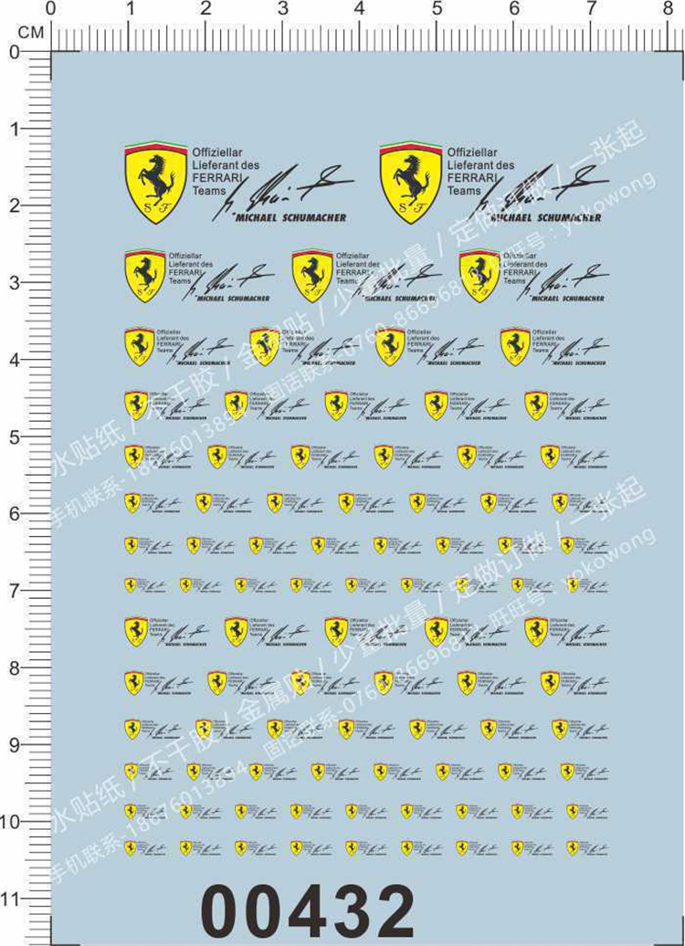 1 x Ferrari Water Slide Decal for Car Model Kit 00432